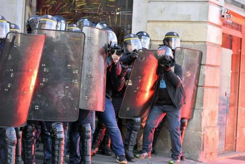 The French media reported that the notoriously violent CRS riot cops even attacked journalists with their batons.