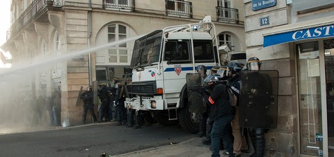 Tear gas, water cannon and “flashball” rubber bullets have been fired at people protesting against police violence and against the destruction of the countryside brought about by the system the cops brutally defend.