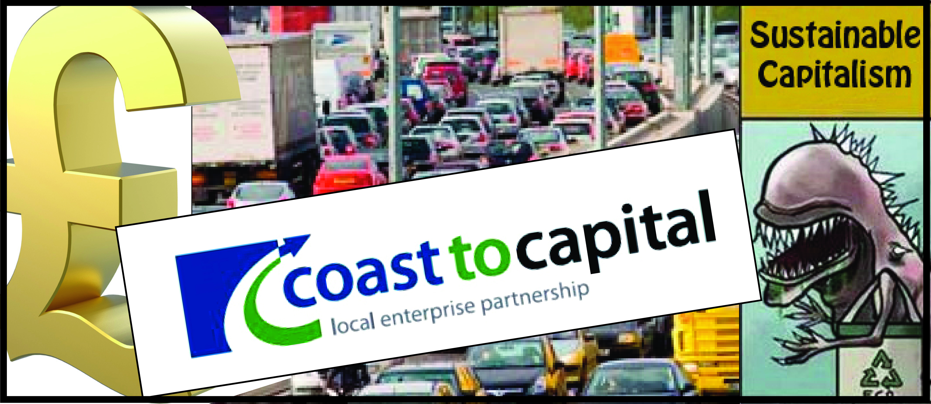 Not really! After all, think of all the plus-boxes that are ticked by the prospect of new motorways being ploughed through the woods and wetlands of Sussex! More and more traffic, more concrete, more contracts for the construction industry – the warped greed-god of economic growth, worshipped by Coast to Capital, West Sussex County Council and all their business partners, will demand the unchecked expansion of its capitalist infrastructure right up until the very day it has triumphantly choked the last drop of life out of this planet.