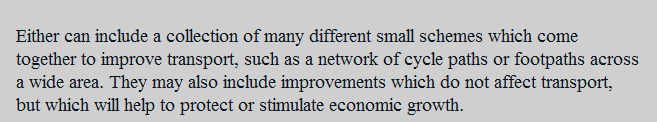 The funding agency in question has stated that schemes do not have to be sustainable or even have to have anything to do with transport at all – they just have to contribute to “economic growth”.
