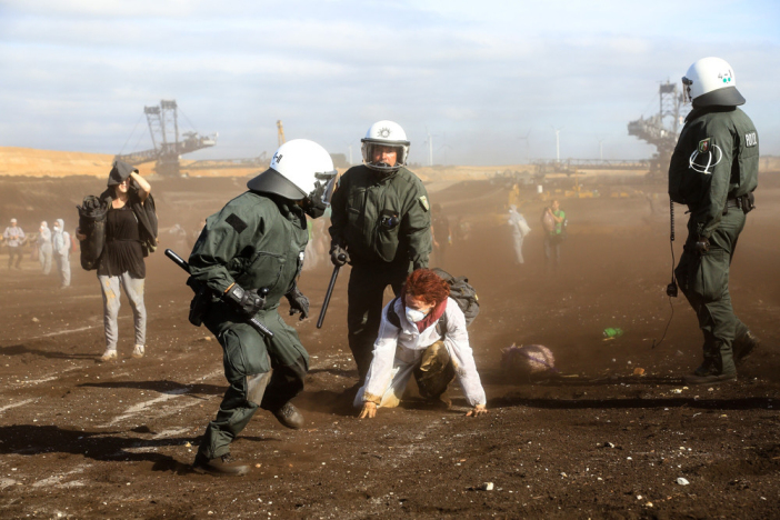 The Ende Gelände (“Here and No Further”) mass action saw people push through police lines and storm a huge lignite mining site at in Garzweiler, west of Cologne, closing it for the day.
