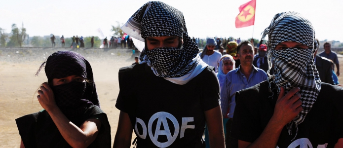 Researchers spoke to three members of Devrimci Anarşist Faaliyet (DAF, or Revolutionary Anarchist Action) in Istanbul. DAF are involved in solidarity with the Kurdish struggle, the Rojava revolution and against ISIS’s attack on Kobane, and have taken action against Turkish state repression and corporate abuse. They are attempting to establish alternatives to the current system through self-organisation, mutual aid and co-operatives.