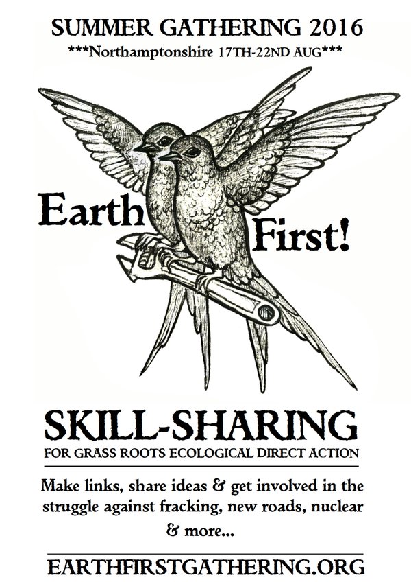 Two UK diary dates. Earth First! has announced that its 2016 summer gathering will be held between August 17 and 22 in Northamptonshire. Further info to be released later. And the 2016 London Anarchist Bookfair will be held on Saturday October 29.