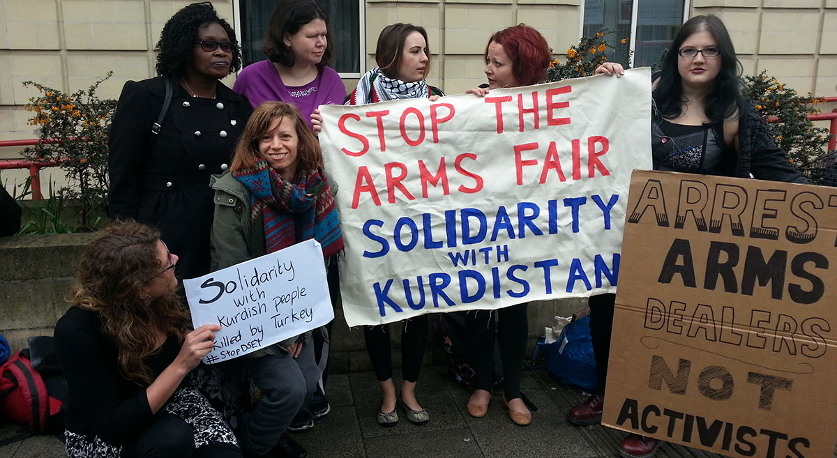 A District Judge has refused to allow the Crown Prosecution Service (CPS) to appeal against the acquittal of eight anti-arms trade activists who were charged with blockading the DSEI arms fair in London last September. The CPS application to appeal was refused on the basis it was ‘frivolous’ and ‘misconceived’. On April 15 2016, eight activists were acquitted on the basis that they were seeking to prevent greater crimes such as torture and the mass indiscriminate killing of civilians in places such as Yemen, Kurdistan, Palestine and Bahrain. See Acorn 24 and update.
