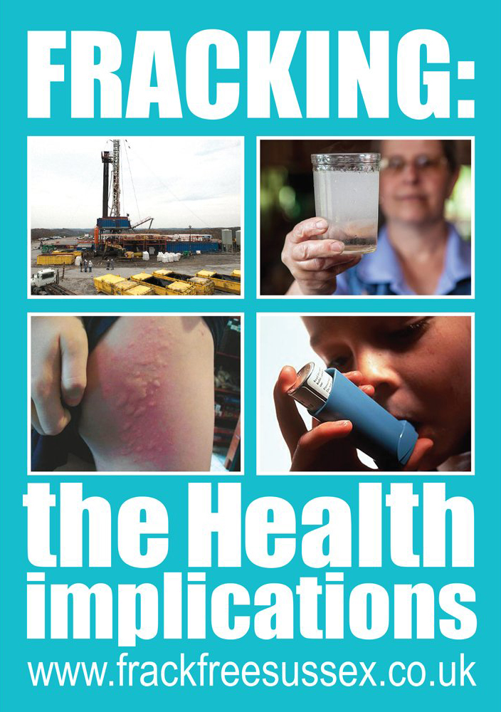A booklet exposing the adverse health implications of fracking has been published online by Frack Free Sussex. It says: “Fracking has been linked to numerous health conditions, including asthma, headaches, high blood pressure, dizziness, nose-bleeds, sore eyes, anaemia, neurological illness, pneumonia, premature birth, heart attacks and cancer. In the UK indirect health effects are already being felt in communities where there are unwanted fracking applications. Stress, depression and anxiety affect residents and people in the locality, particularly the vulnerable and the elderly.”