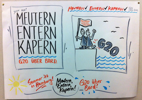 The broad anti-G20 platform wants to create a common week of protest against the G20 summit. The idea so far is for a counter summit on July 5 and 6, a day of action on July 7 and a huge demo on July 8, at which they expect more than 100,000 people.