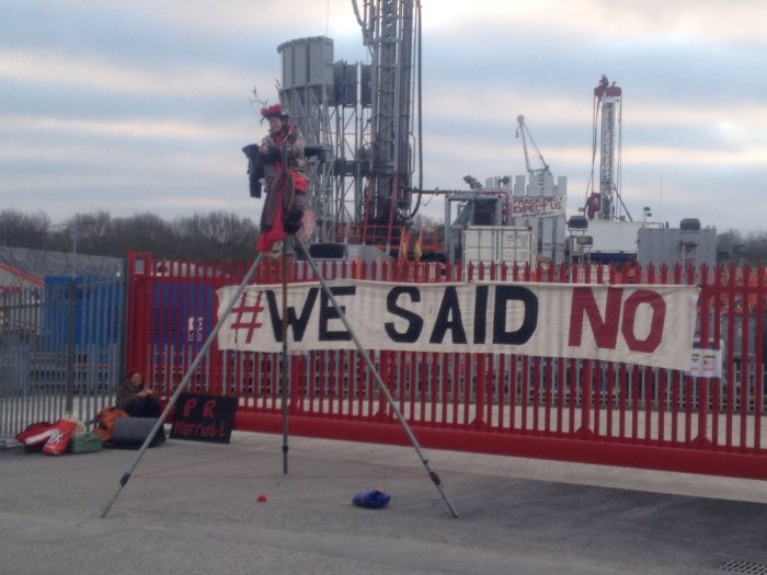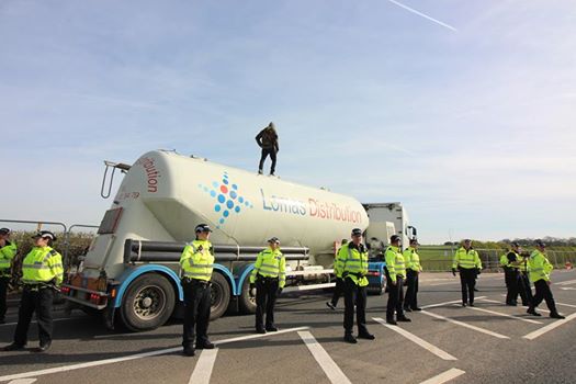 Even as this bulletin was being completed, on the morning of Friday April 7, news came in from the north of England of a blockade of PR Marriott, supplier of drills to the fracking industry. There was a tripod, three lock-ons and a banner drop.
