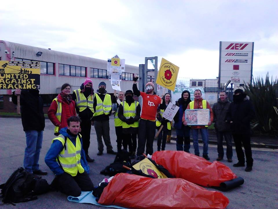 Opponents of fracking in Lancashire blockaded the gates of fracking contractors A.E. Yates in Bolton. Road haulage firm Eddie Stobart also had its depot in Warrington blocked. This was part of successful ongoing local campaign, which previously saw quarry operators Armstrong Aggregates cancel a contract to supply AE Yates and drilling firm Cuadrilla with materials for the building of the shale gas exploration site at Little Plumpton after dozens of Bolton Against Fracking protesters targeted the Montcliffe Quarry.