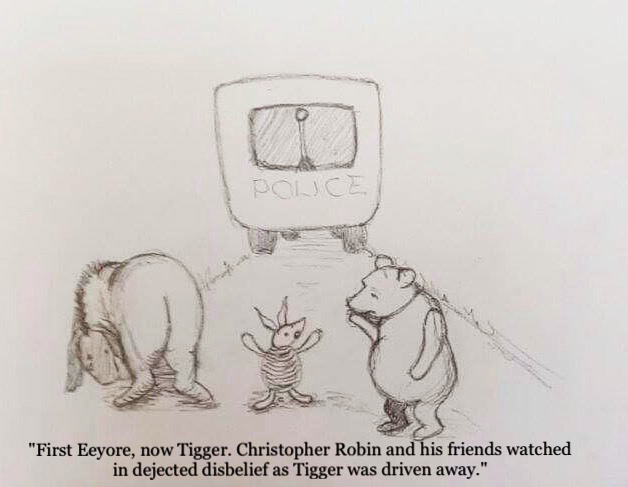 Fans of Winnie the Pooh will be delighted to hear that he, Piglet, Eeyore and friends feature in a brand new 21st century vignette of English rural life, in which the Hundred Acre Wood is targeted for fracking, Tigger gets arrested and Pooh invents the lock-on by mistake. Open the first page here.