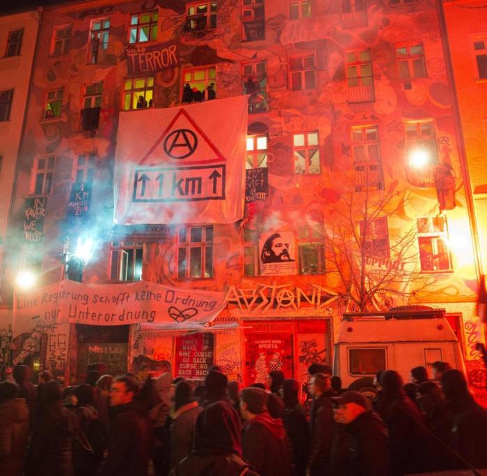 Says a call for resistance from Berlin’s Rigaer 94 squat: “In this battle for capitalist and nationalist ends, the state will always end up demanding fascism. With the same tactics, they try time and time again to delegitimize resistance by branding it criminal, antisocial, and apolitical.