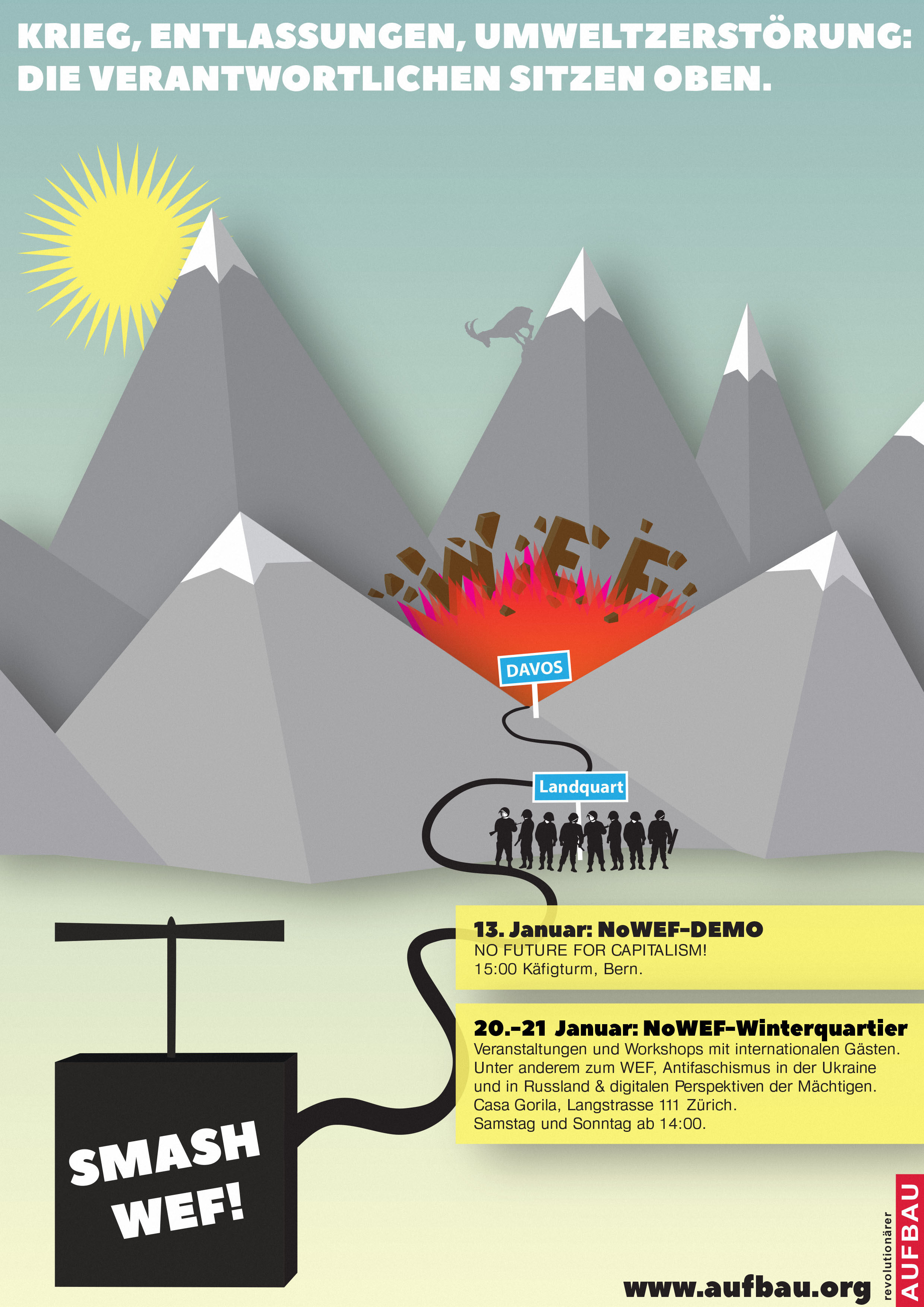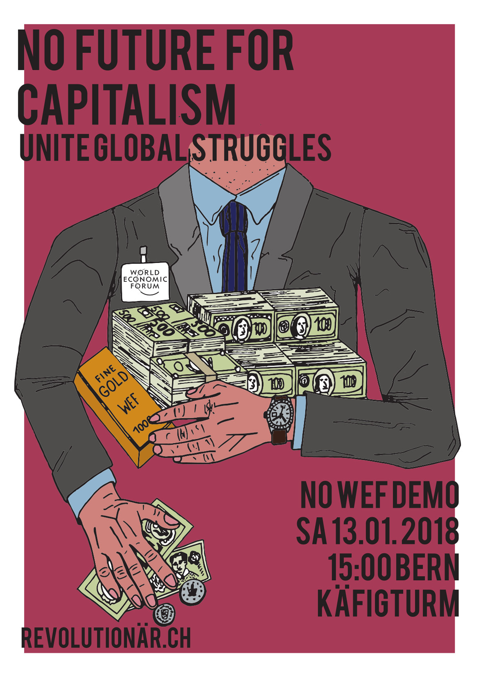 Say the Swiss anti-capitalists: “Capitalism and its policies are close to the abyss and states are prepared to prevent change with high levels of violence. Radical movements seeking to tackle the problems at their roots are being banned and suppressed across the world. Let’s put our resistance on the streets!”