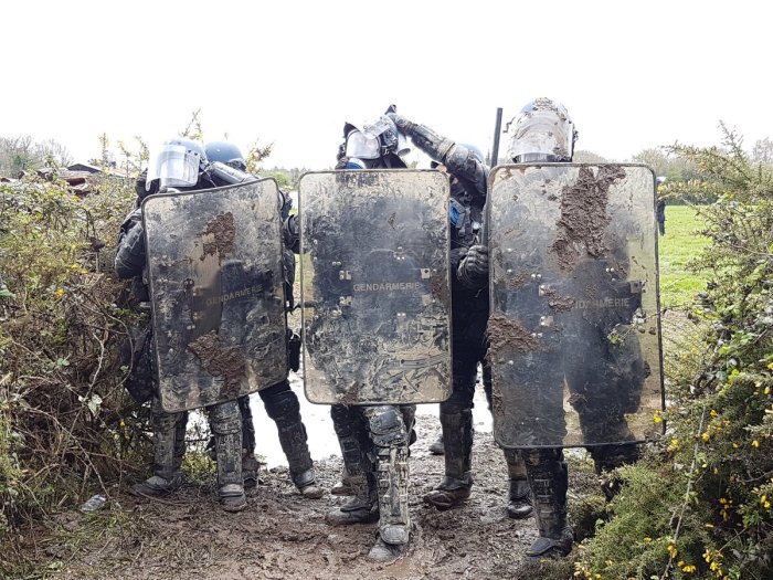 The attack on the Zad began under cover of darkness, in the early hours of Monday April 9. This long-planned assault involves 2,500 militaristic gendarmes, armoured vehicles, lorries, cattle trucks, helicopters, and hundreds of riot police on stand-by in nearby Nantes and Rennes.