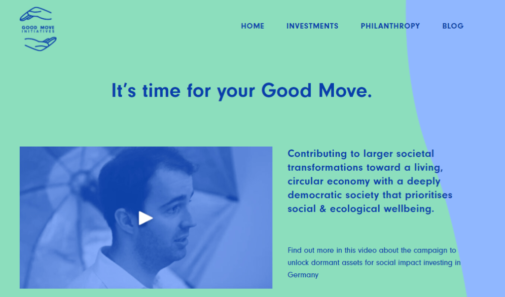 In a video featured on the home page of the Good Move Initiatives site, Schwarz talks about his “campaign to unlock dormant assets for social impact investing in Germany”.