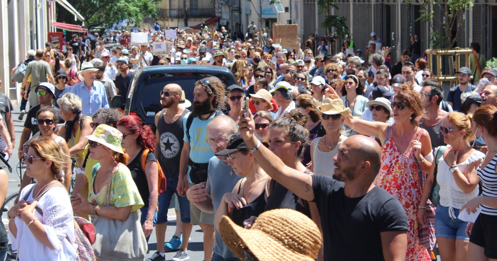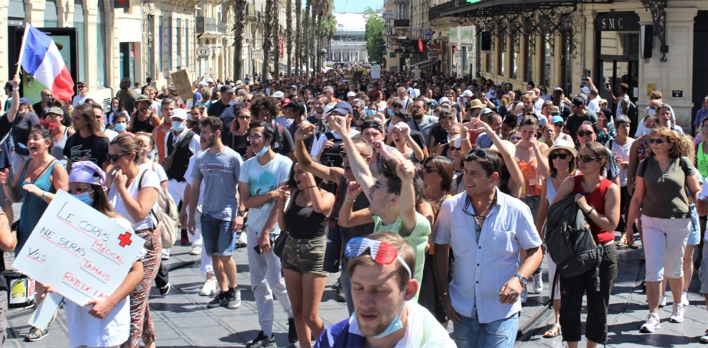 “We don’t want the pass sanitaire!” chanted the thousands in Montpellier. “Macron resign!” “Résistance!” “Liberté!”
