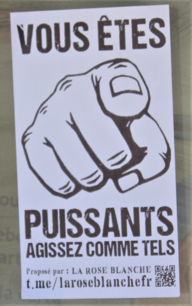 This condemns the “Apartheid sanitaire” being imposed by the state: “Treated like fearful cattle, ever more controlled, divided and stripped of our freedoms, we are condemned by power to still further exploitation.