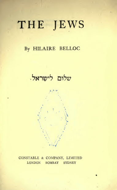 In the preface to the 1928 second edition, Belloc wrote: “When the book first appeared it was called by those who had not read it ‘Anti-Semitic’ – that is, a book written in antagonism to Jews by a man who hated Jews. I have no antagonism of this kind. So far from hating the Jewish people, I seek their company, I enjoy their conversation, and of my friends the proportion who are either wholly or partly of Jewish blood is large”. [24]