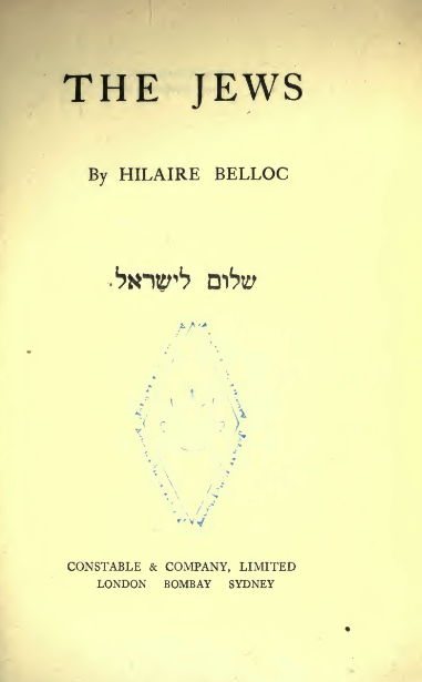 [24] Hilaire Belloc, The Jews, preface to 1928 edition, cit. pp. 122-23.
