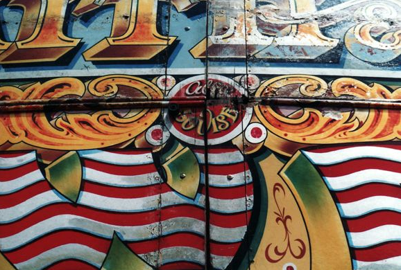 As you grew closer, closer than anyone was ever supposed to get, you saw that the paint was clumsily applied and chipping off in places, while parts of the oh-so impressive surface had clearly been glued back into place after falling off.