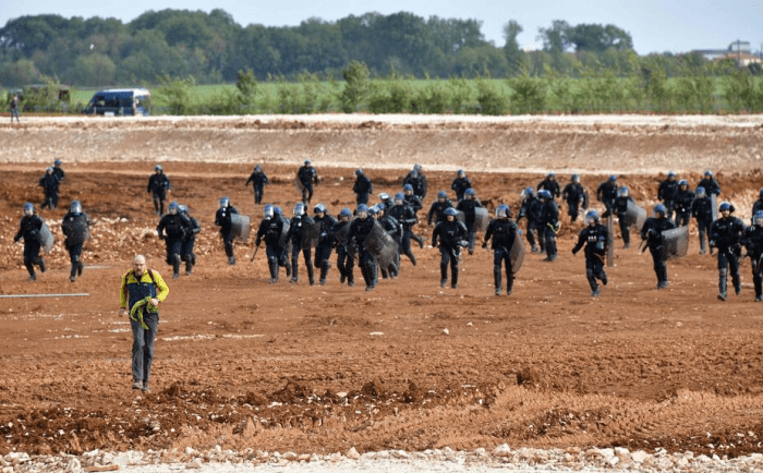 The atmosphere is so overheated by the state’s policy of scorched-earth fait accompli that the defenders are now allowing themselves to take offensive action, which the state, as the enforcement agency for economic interests, cannot allow.