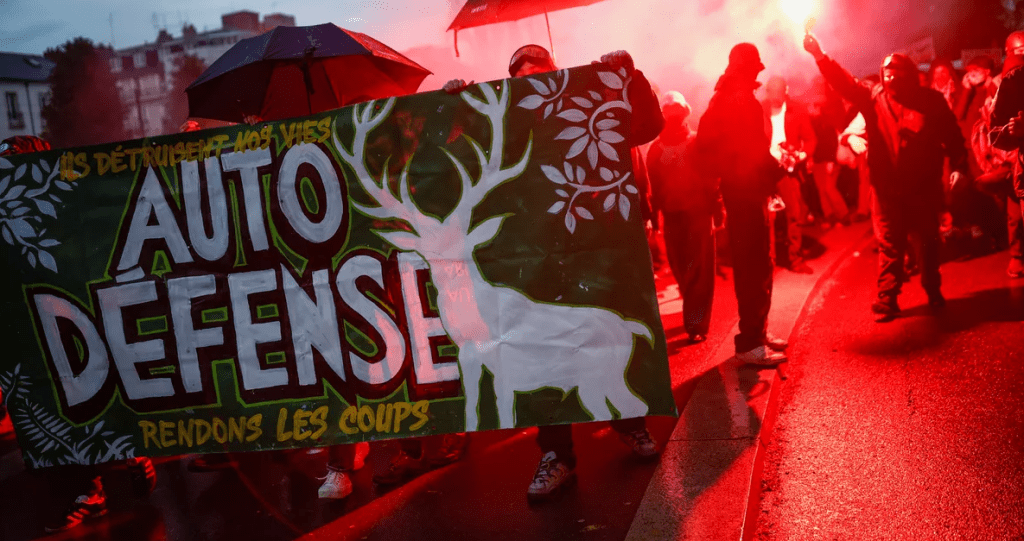 We saw this in March 2023 in the protests against the construction of a mega-reservoir in Sainte-Soline, France, but we could also cite recent Iberian examples: the protests against the high-speed rail line in the Basque Country, the eviction of communities in Itoiz and Fraguas, the struggle against high-voltage power lines in Girona.