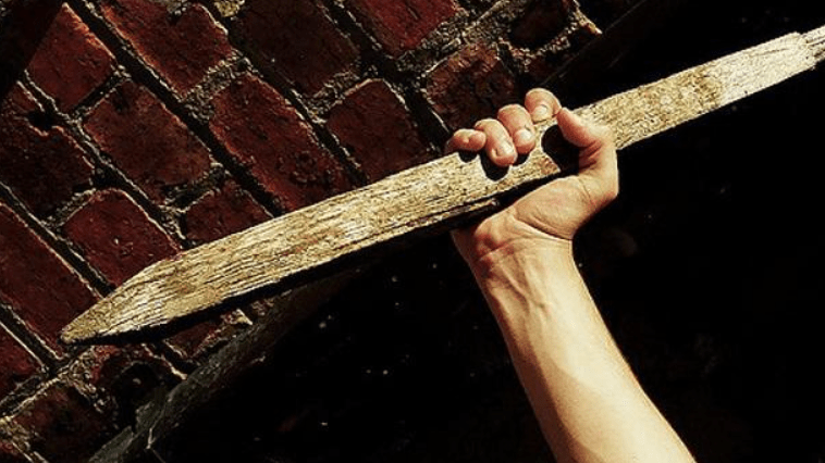 Emboldened by all this, you started to climb the sides of the worm-throne and, as you did so, you broke off a length of wood hanging loose and ragged from the ancient and unsteady structure.
