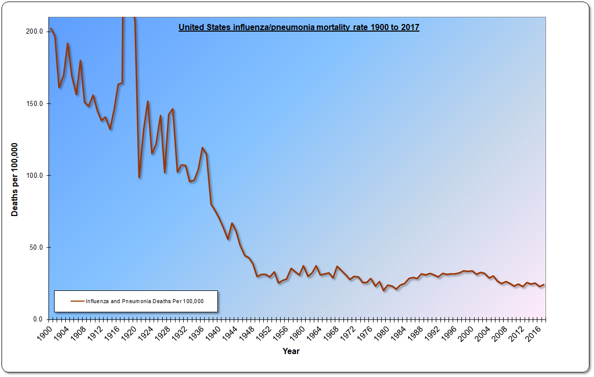 Pneumonia and Influenza: Historical Death Rate in the USA
