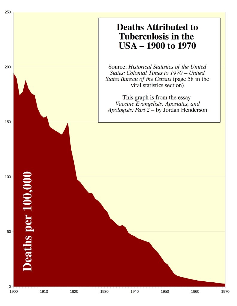 The graph above is from Roman Bystrianyk and Suzanne Humphries’ book Dissolving Illusions. You can verify that this graph accurately reflects the statistics recorded in the sources cited by consulting these publications and checking. While the information spans multiple publications you can conveniently verify most the time period of this graph in one publication on page 58 of Historical Statistics of the United States— Colonial Times to 1970 Part 1 – Bureau of the census.