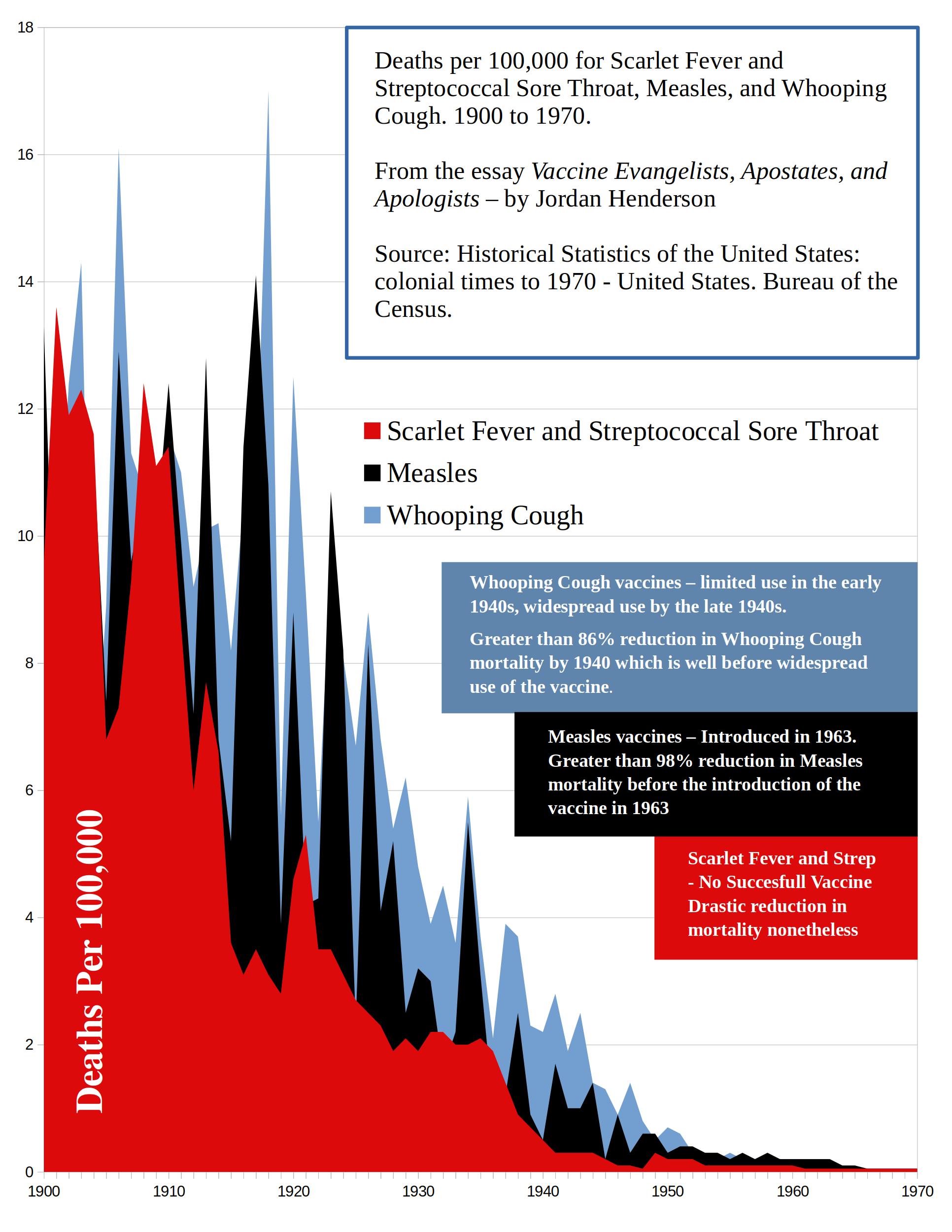 As you can see, in the early 20th century, deaths were attributed to Scarlet Fever at a rate nearly on par with Measles and Whooping Cough. In the 19th century Scarlet Fever death rates were on average even higher then either Whooping Cough or Measles.