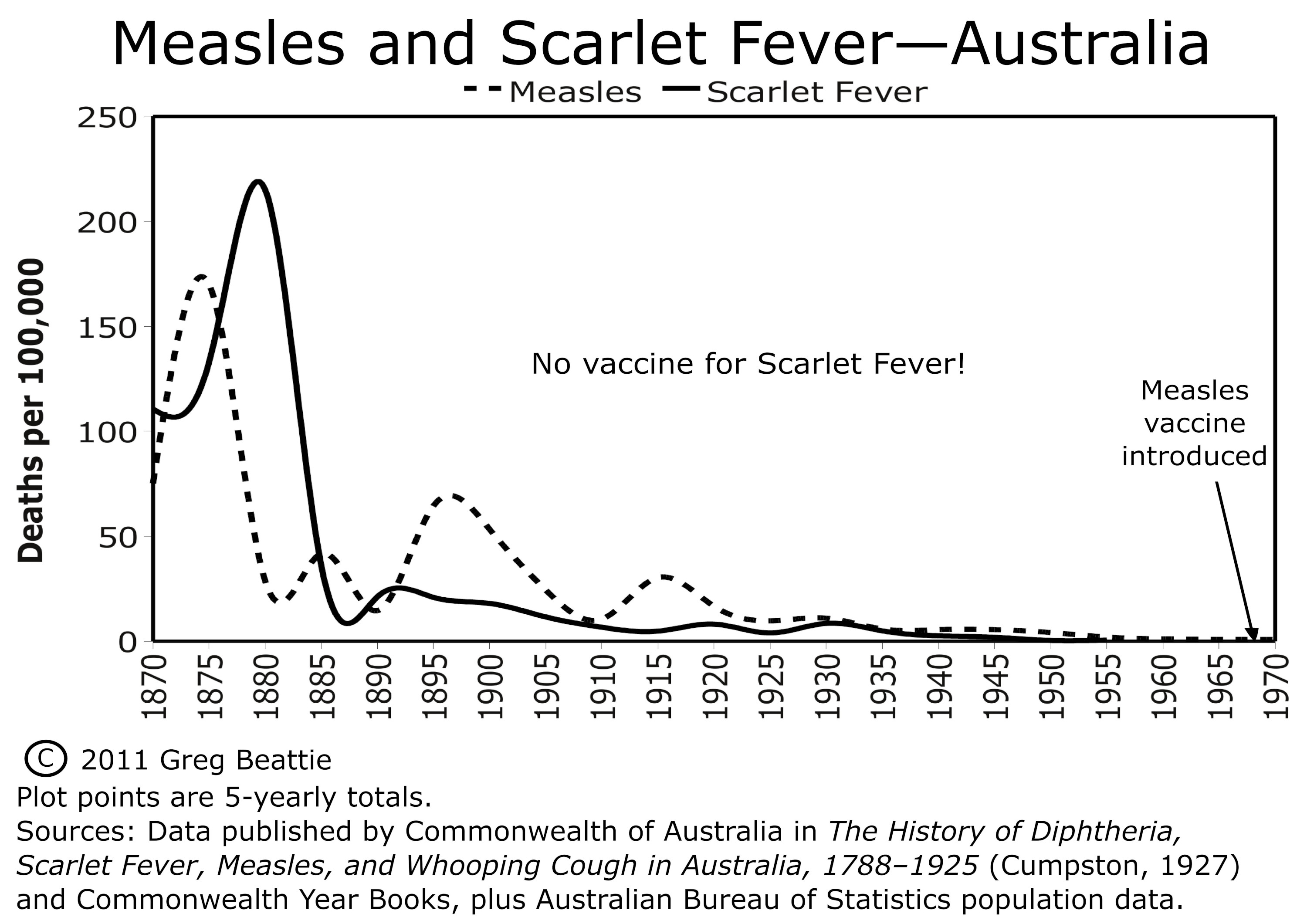 2. Historical Death Rates for Measles, Scarlet Fever, and Whooping Cough in the USA, England and Wales, and Australia.