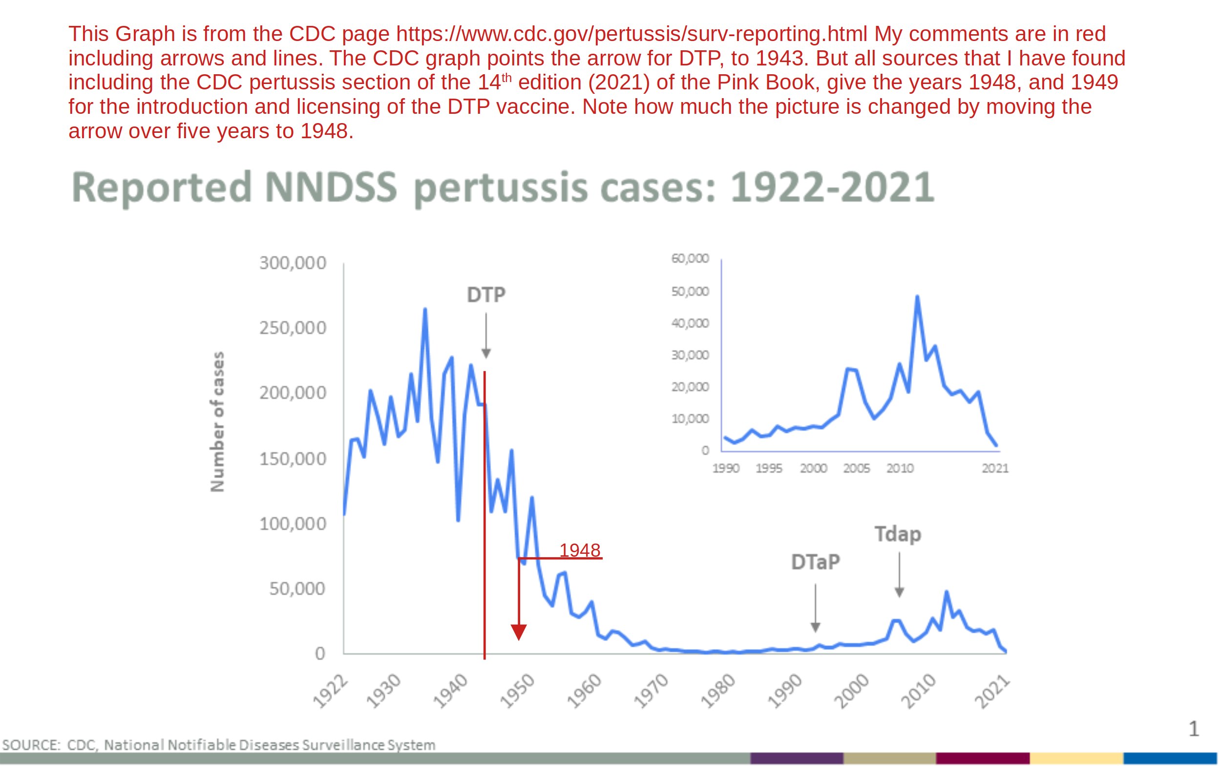 Secondly, Isabella’s graph says “Mid 1940s DTP vaccine licensed” with an arrow pointing to 1943. She gives no source for this as usual. All sources that I have found point to DTP being available in 1948 and licensed in either 1948 or 1949.