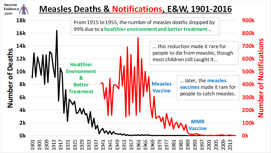 The above graph is from an evenhanded article on VaccineEvidence.com. They give links to the UK government databases they used to source their data at the bottom of the article linked to. They also, interestingly, take measles notifications of incidence data at face value.