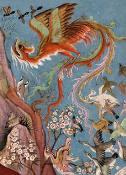 Birds are presented individually, in the context of the various allegorical stories, but also collectively and mythologically in the shape of the Símurgh, which Avery tells us is a name of the mythical Iranian Phoenix.