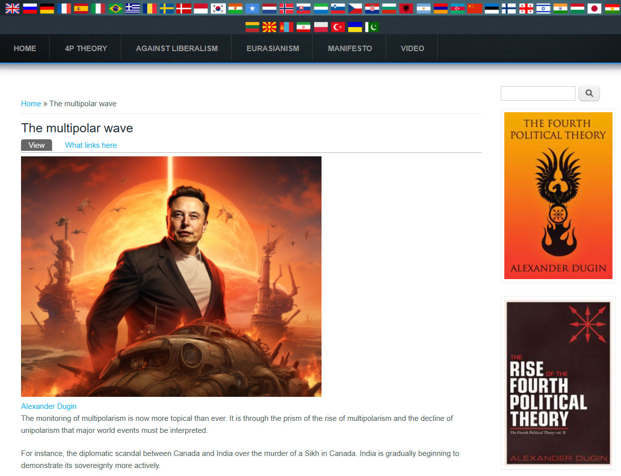Dugin likewise takes Elon Musk entirely at face value, as if he had nothing to do with the WEF and its Great Reset.