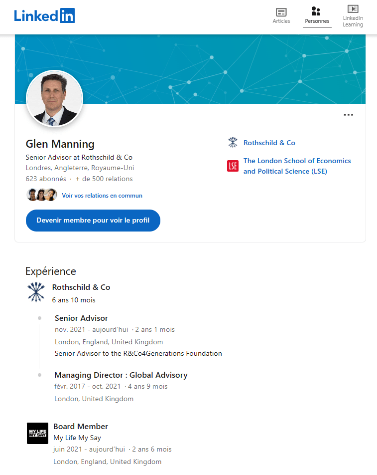 He writes, accurately, that My Life My Say trustee Glen Manning is a senior banker with Rothschild & Co. I also note that he has enjoyed a long career with known Rothschild entities like J.P. Morgan.
