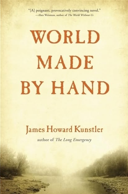 To supplement the more analytic approach he takes in The Long Emergency, Kunstler provides a dramatic portrayal of what a post-catastrophe world might look like in the form of a four novel series. Both the first novel and the series as a whole are called World Made By Hand (the first novel appeared in 2008 and the fourth came out in 2016).