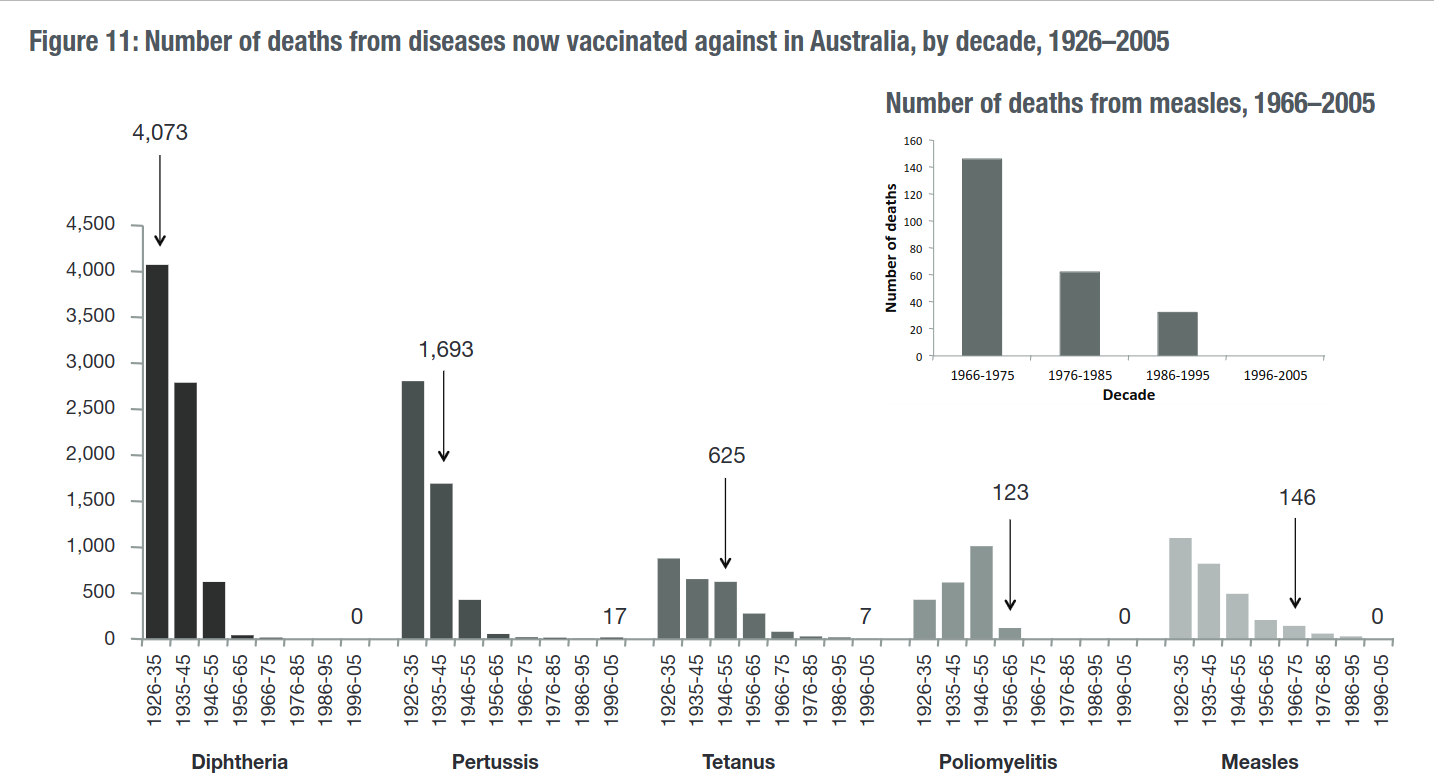 - Their effort to reroute the conversation away from historical questions and instead to efficacy questions is especially unreasonable, as they themselves make numerous historical mortality claims on other pages of their website such as, “In the 1900s, diphtheria caused more deaths in Australia than any other infectious disease and was a common cause of death in children, but has now almost disappeared in Australia due to immunisation.” – From their diphtheria page.