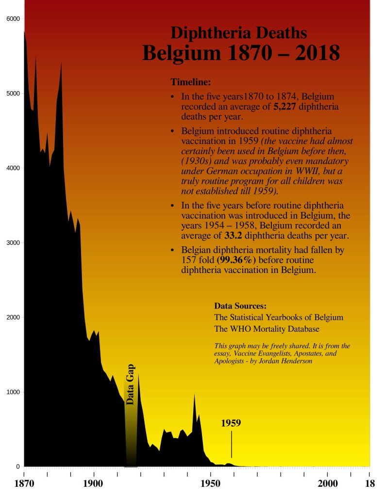 This is the 7th and final installment of this essay series. Here is the itinerary of the final installment: It’s been a while since the publication of the 6th installment, so to get back in the rhythm of the series I’ll kick off this installment with some classic anti-vaccinationist fun – juxtaposing pro-vaccine propaganda with the reality that directly contradicts it. We’ll look at how an illustrious Belgian institution attempts to deceive the reader into believing that Belgium’s 1959 routine diphtheria vaccination program is responsible for the plummet in Belgian diphtheria mortality, and then we’ll cure that fanciful pro-vaccine notion with a dose of reality.