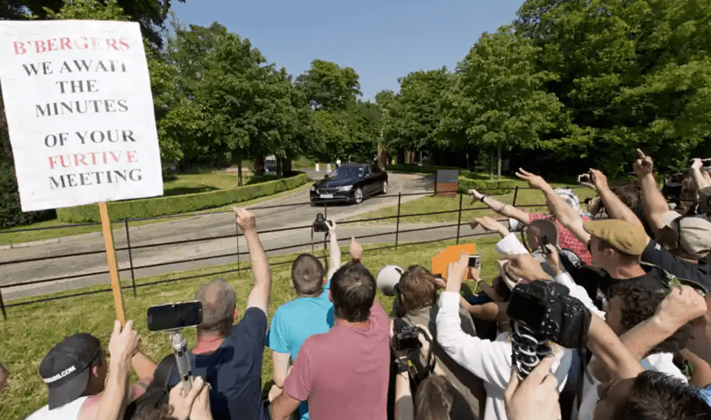 I was also part of a huge crowd demonstrating outside a luxury country hotel near Watford when it hosted the 2013 Bilderberg meeting, yet another secretive gathering of the “public-private” mafia.