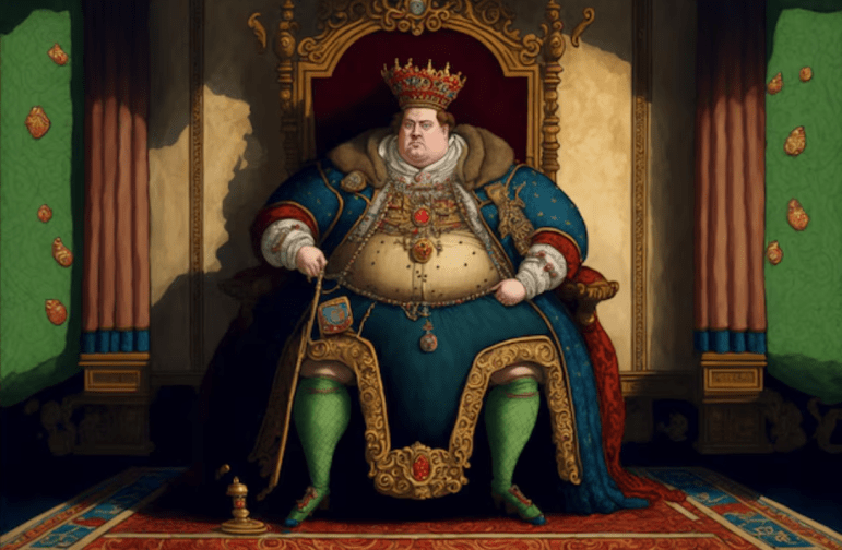 When King Sossidge ventured out of the palace for his next Sunday Stroll Among the People, he was virtually invisible behind all the rows of heavily-armed guards protecting him.