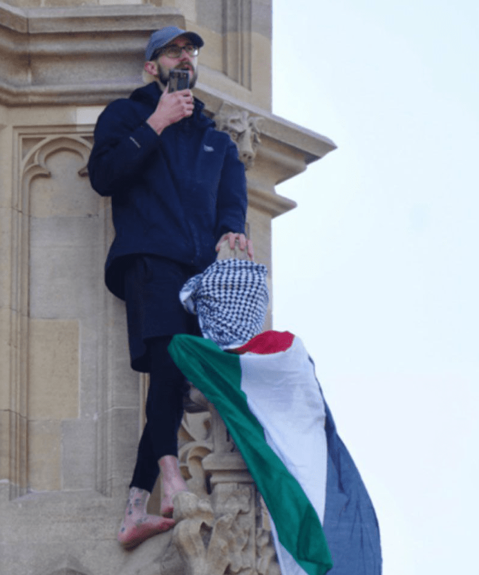 “One person, in a singular act, with zero budget, counters multi hundred million dollar Zionist propaganda machine. More and more of this will come. Make it an avalanche of truth and righteous rage”. Powerful words from Susan Abulhawa after a British protester forced media attention on resistance to the Zionist global mafia by spending 17 hours on the side of Big Ben in London, on Saturday March 8.