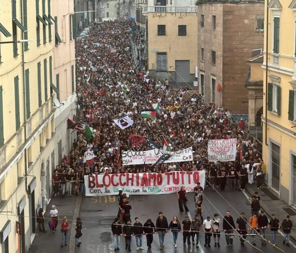 “From Rome to Milan, Bologna to Genoa, Livorno to Naples, Turin to Florence, Bari to Palermo, and over 60 more cities across Italy — workers are massively rising in solidarity with Palestine, demanding an immediate end to Israel’s genocide in Gaza”, declared one X post. The Italian public’s response to Israel’s war crimes has been highly impressive, not least the evolution of the popular chant of siamo tutti antifascisti into siamo tutti antisionisti. Anti-Fascism is, today, necessarily anti-Zionist.