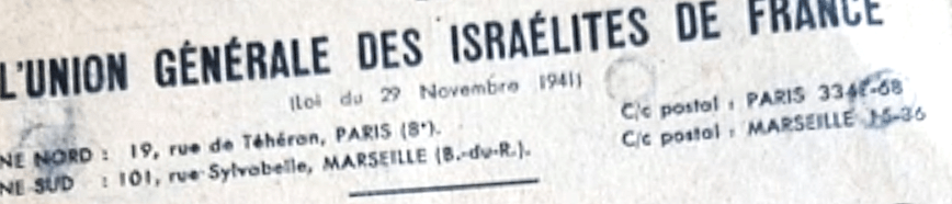 “Only the Union générale des Israélites de France, 19 rue de Téhéran, Paris (service 14), is authorised to present to the occupying Authorities demands concerning Israelites”. [42]