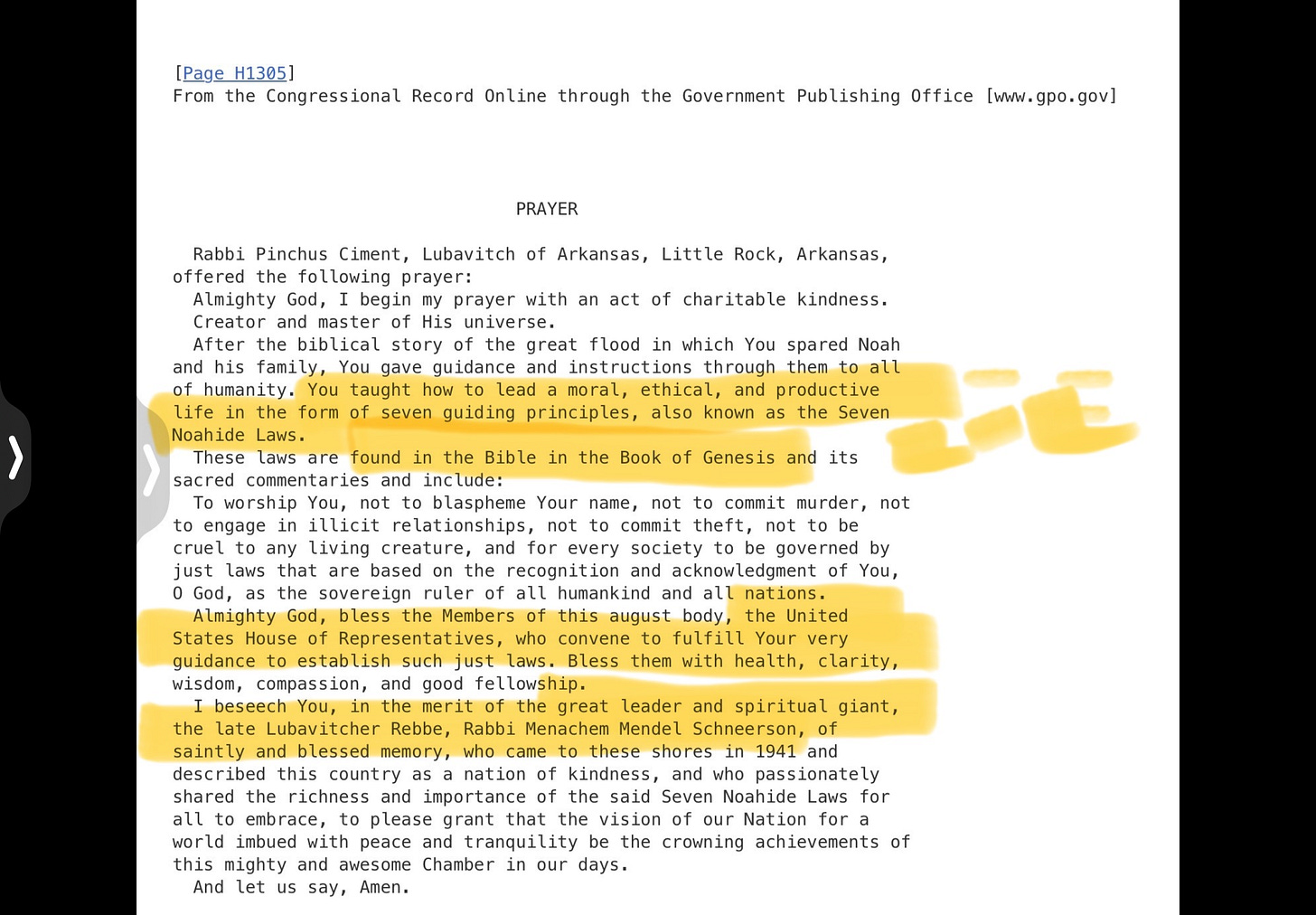 For the record, I am posting several examples of rabbis who were invited openly into American political spaces, including rallies and Congress itself, where they publicly invoked the Seven Noahide Laws and, in some cases, explicitly mentioned Rabbi Menachem Mendel Schneerson. They took place at official political events, on public platforms, before elected officials and the American people.