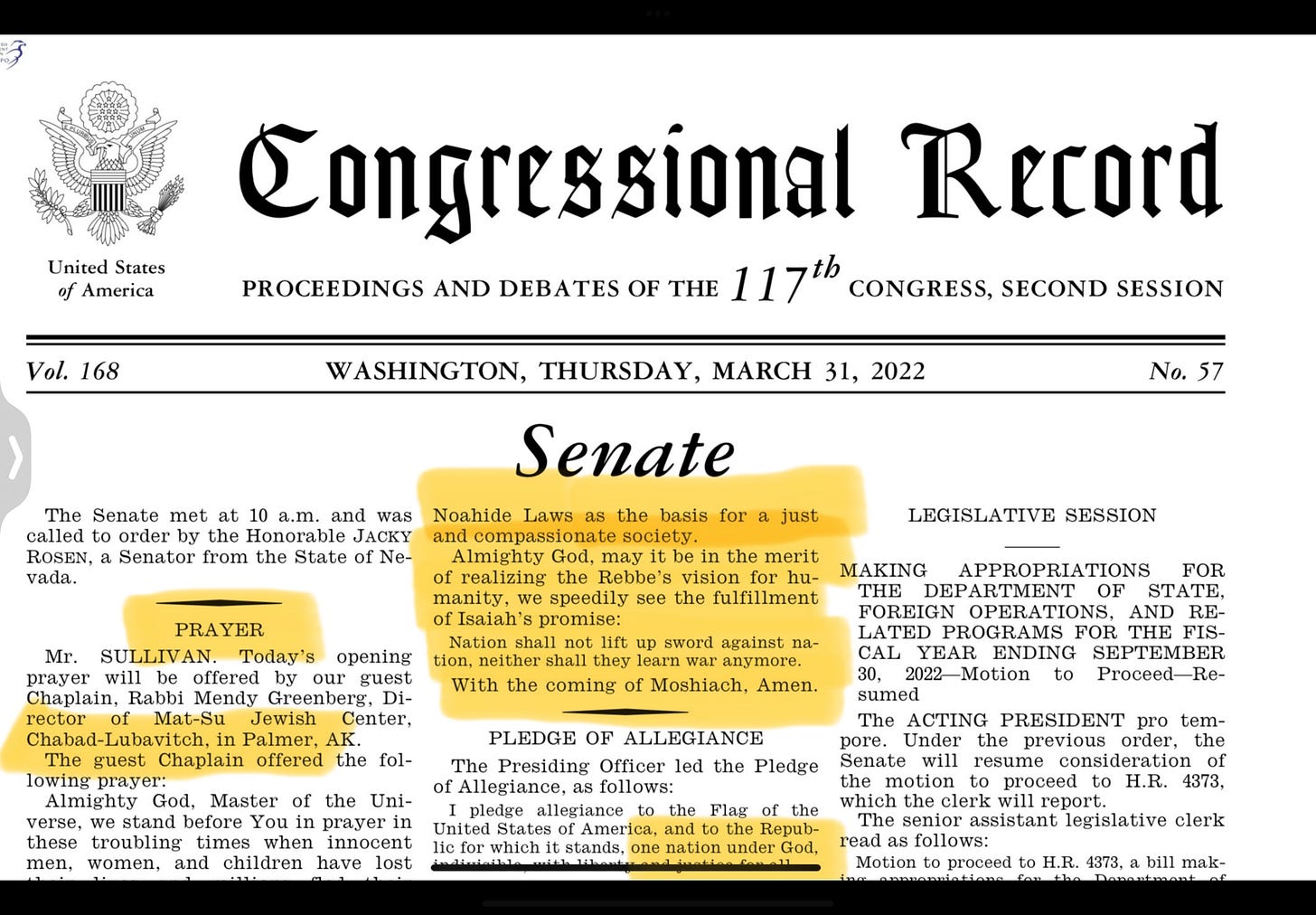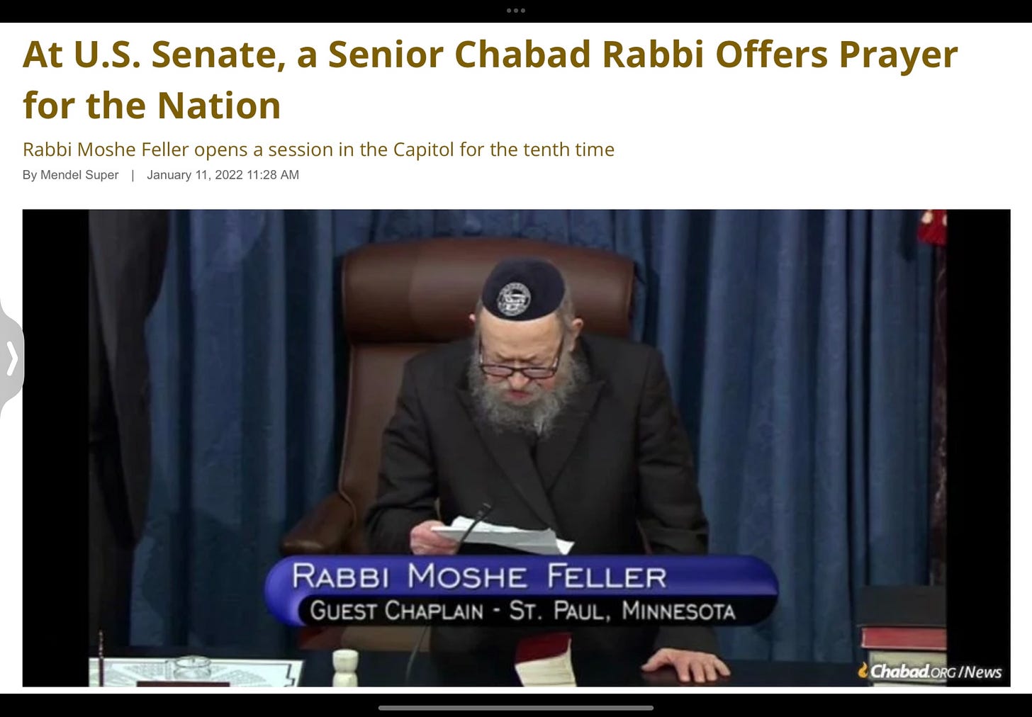 And another Chabad report on the Senate invocation honoring Rabbi Menachem Mendel Schneerson – I don’t have the video but I have the article: