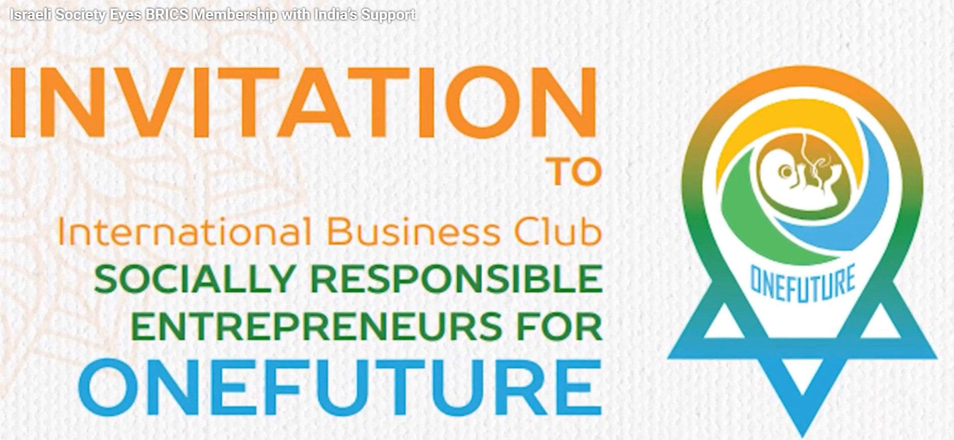 This (less-than-resonant) video, published on YouTube under the heading “Israeli Society Eyes BRICS Membership with India’s Support” promotes a conference called Socially Responsible Entrepreneurs for ONEFUTURE.