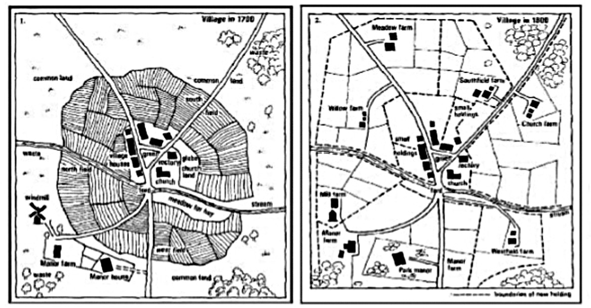 He explains: “To enclose a village meant that the inhabitants had to abandon their co-operative customs, and break up their great open fields into little hedged plots, one single piece to each landholder and, of course, the largest by far to the landlord himself…